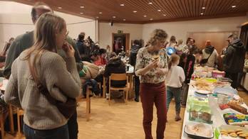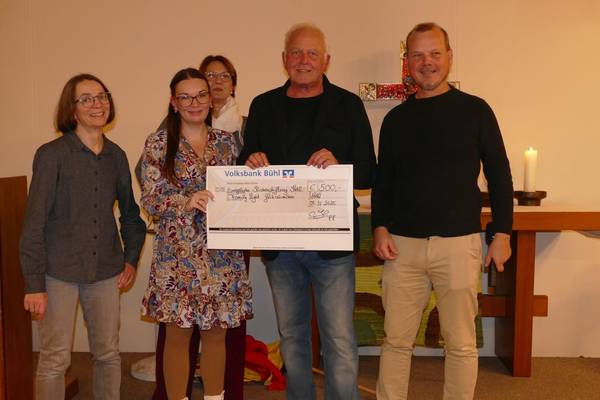 Beim Laternenfest der Glühwürmchen überreichte die evangelische Kirchenstiftung eine Spende von 500 € an die Evang. Kirchengemeinde Kehl für die Familienarbeit „FamilyLight“ und spendete Weckmänner für alle Familien.