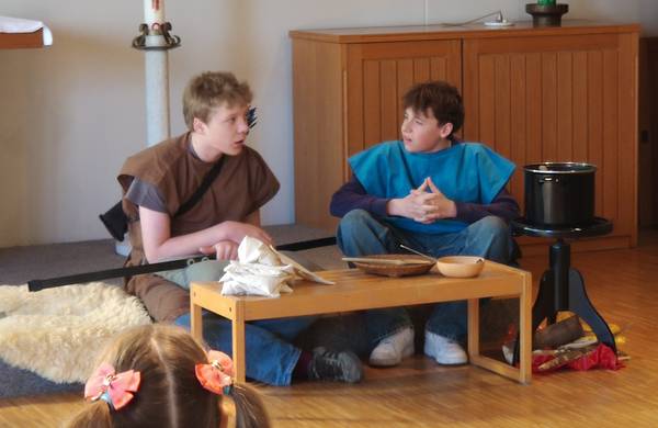 ![]() Vorarbeiten zur KibiWo: Zusammenbau einer Schattenwand durch zwei Teamer | ![]() Bibeltheater mit den beiden Zwillingen Esau und Jakob |
