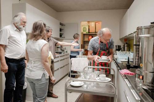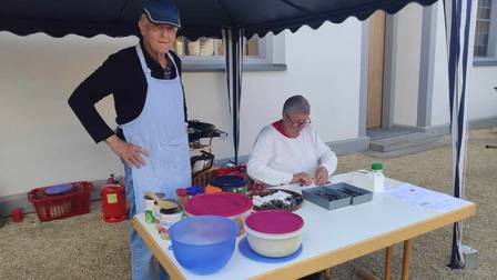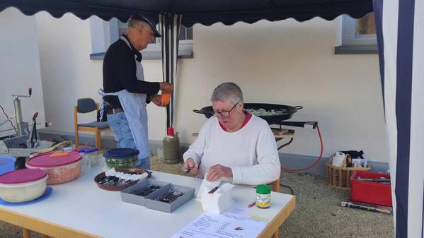 ![]() "Public Cooking" am Gemeindefest mit unserem Kochteam: köstliche vegetarische Reispfanne. | ![]() |