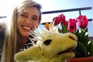 Pfarrerin Roos Van De Keere mit ihrem Schäfchen